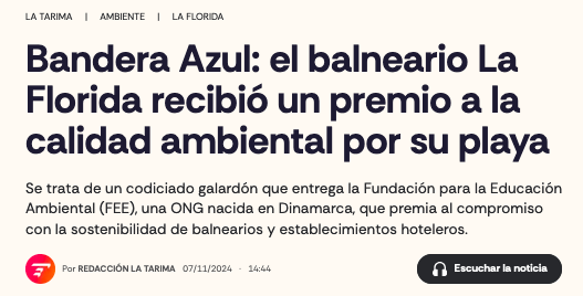Se trata de un galardón internacional que garantiza calidad del agua y servicios, entre otros criterios estandarizados.