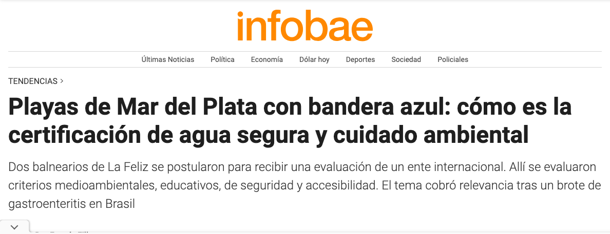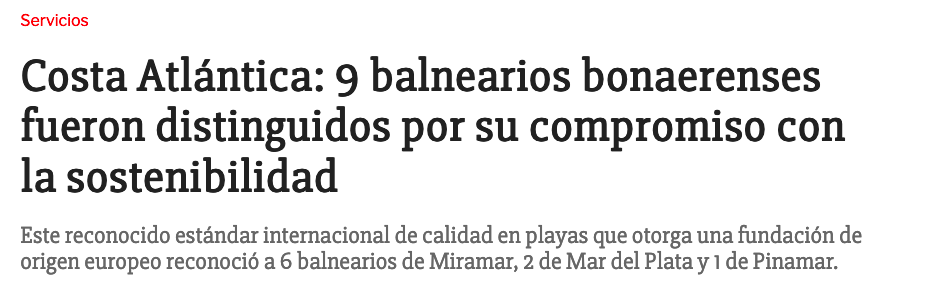 San Sebastián y Mediterráneo fueron distinguidos por la «calidad de agua de baño, gestión ambiental, educación ambiental, seguridad y accesibilidad». Son los únicos de Argentina en obtener el galardón internacional.